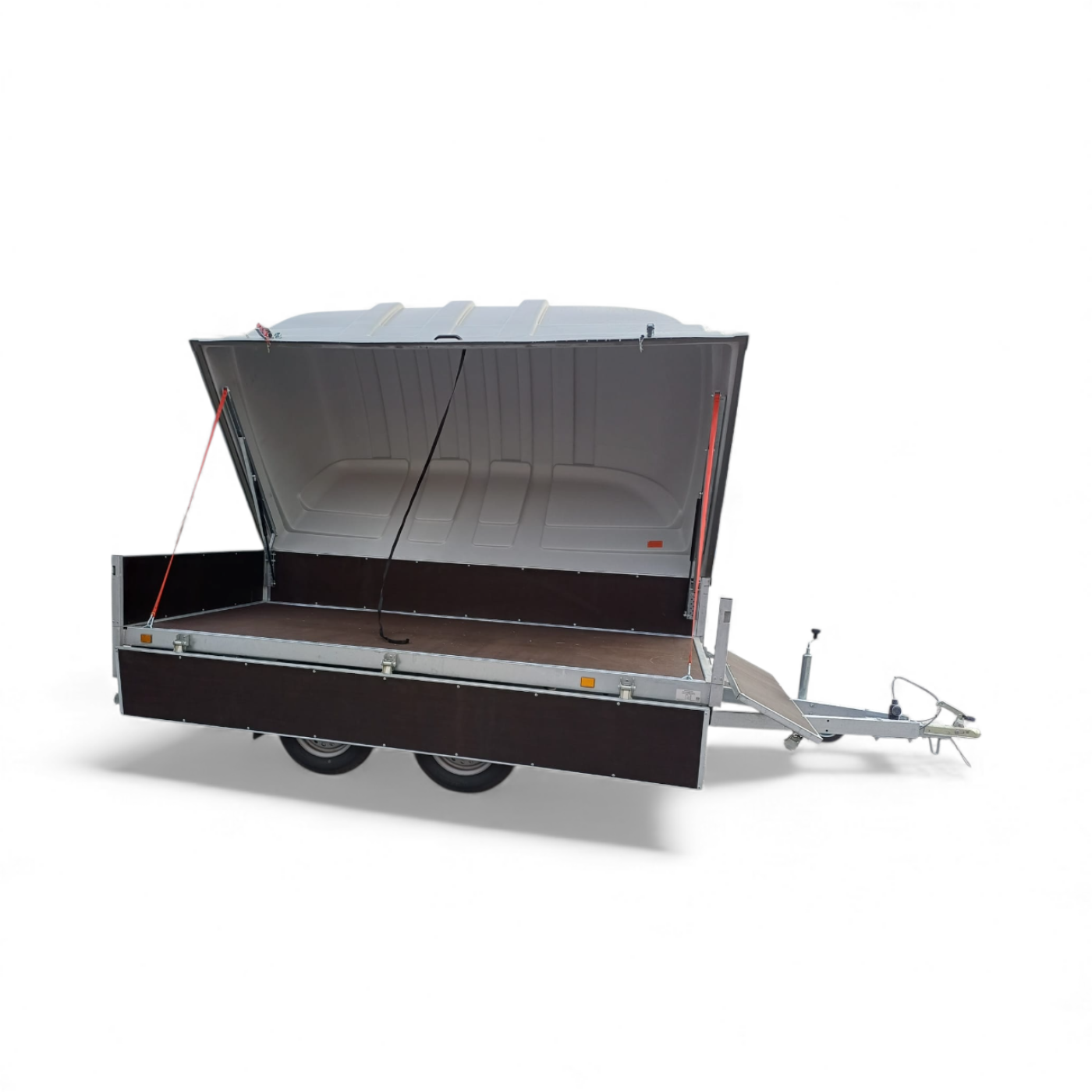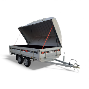 Platformas piekabe BREN-3015FB-2L ar bortiem, pelēku plastmasas vāku un karsti cinkotu viengabala pilnībā metinātu rāmi ir izgatavota no izturīga konstrukciju tērauda S355.
